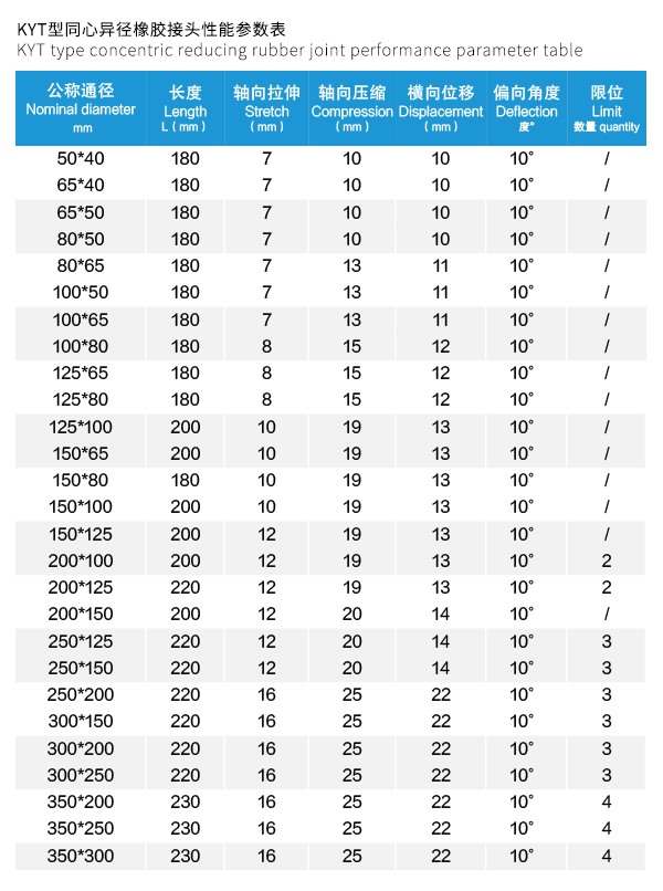 乌鲁木齐变径单波橡胶膨胀节 样本,橡胶接头不仅需要看他的材质,还需要考虑他的压力,一般情况下,我们常用的压力有1.0Mpa的和1.6Mpa的不过某些地区所使用的压力可以降到小,所以也有选择0.6Mpa的,但是也有的地区由于管道的压力过大或者管道是属于突然加压的运行的,那便需要使用2.5Mpa的。